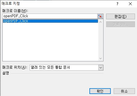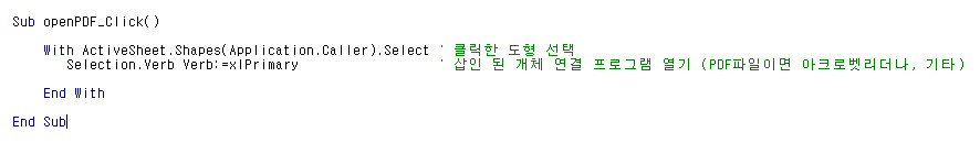 즉, 엑셀에서 개체 클릭 시 자동으로 열기 매크로 입니다.