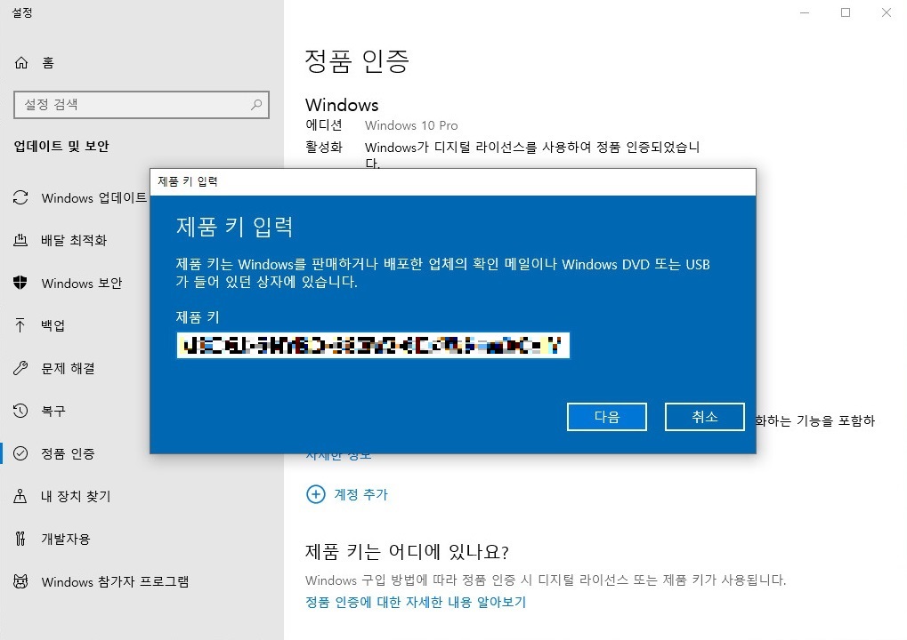 제품키 정품 인증받기