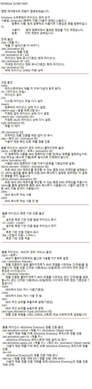 slmgr 명령어들 입니다.