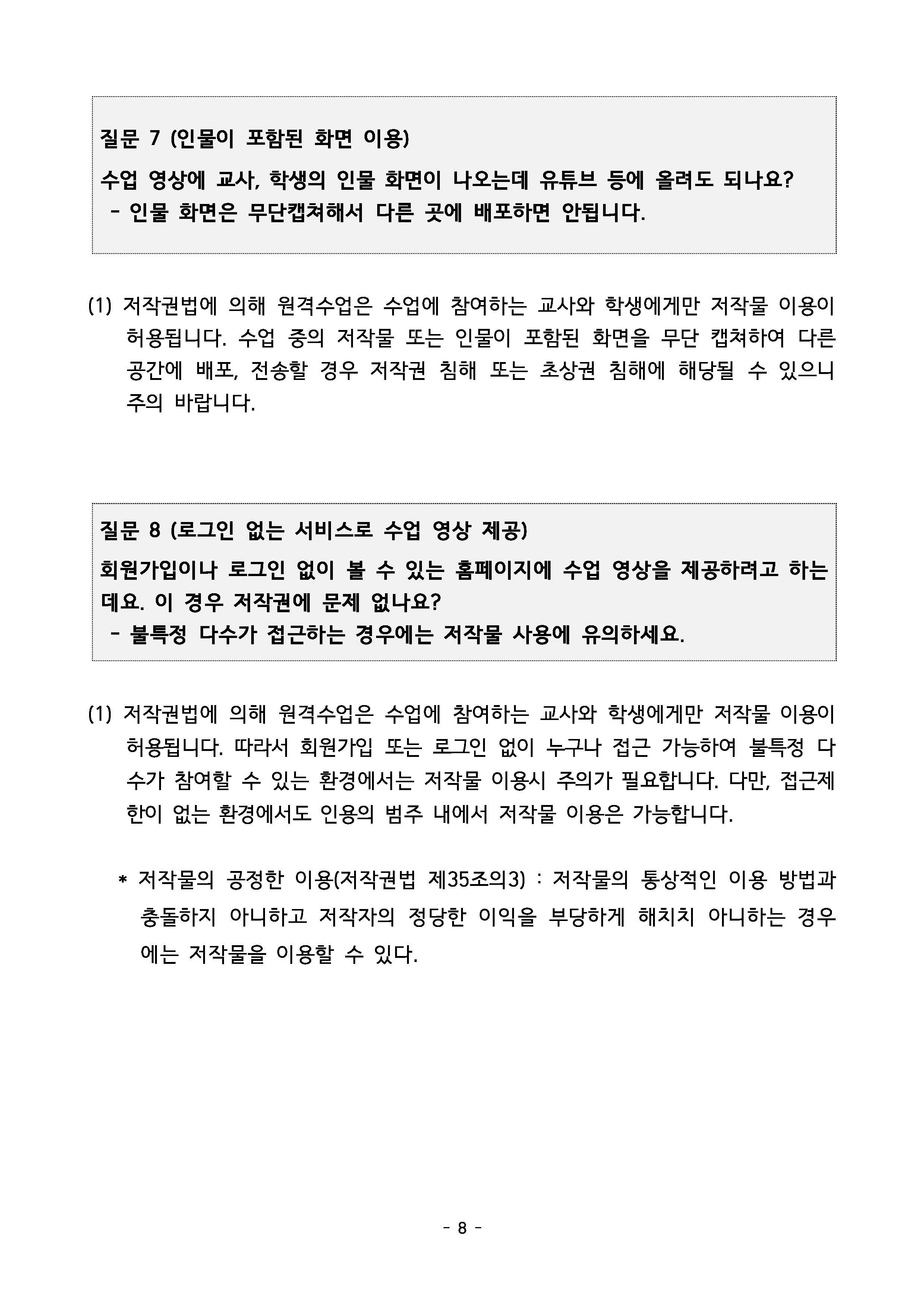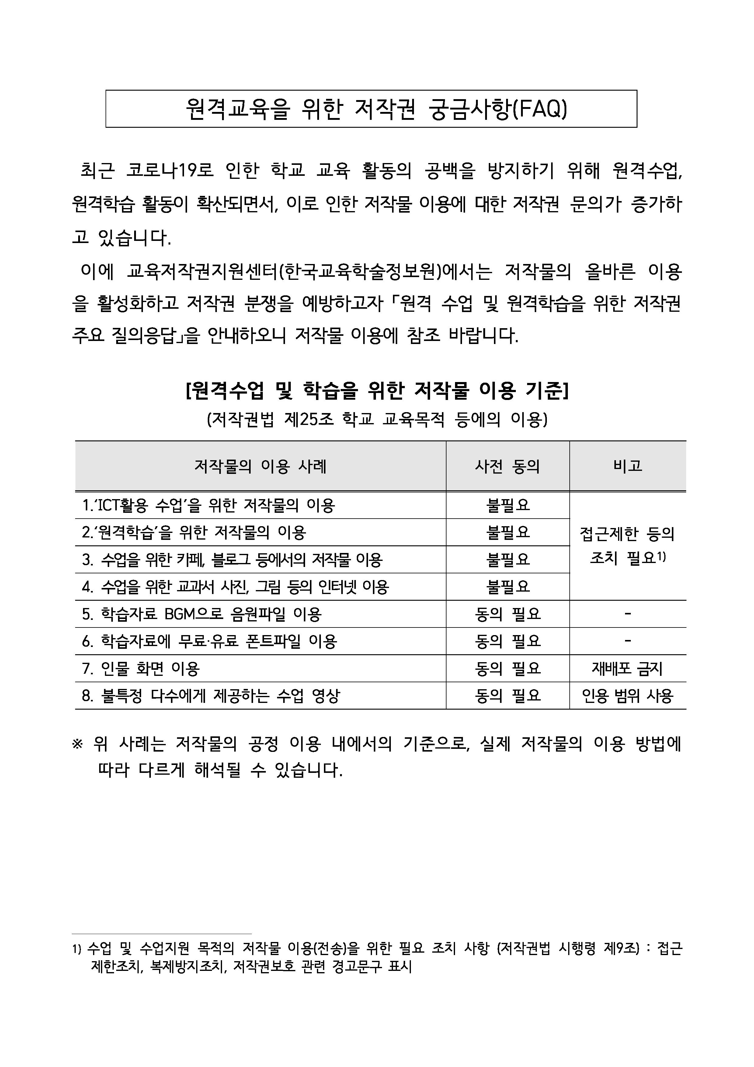 [원격수업 및 학습을 위한 저작물 이용 기준]