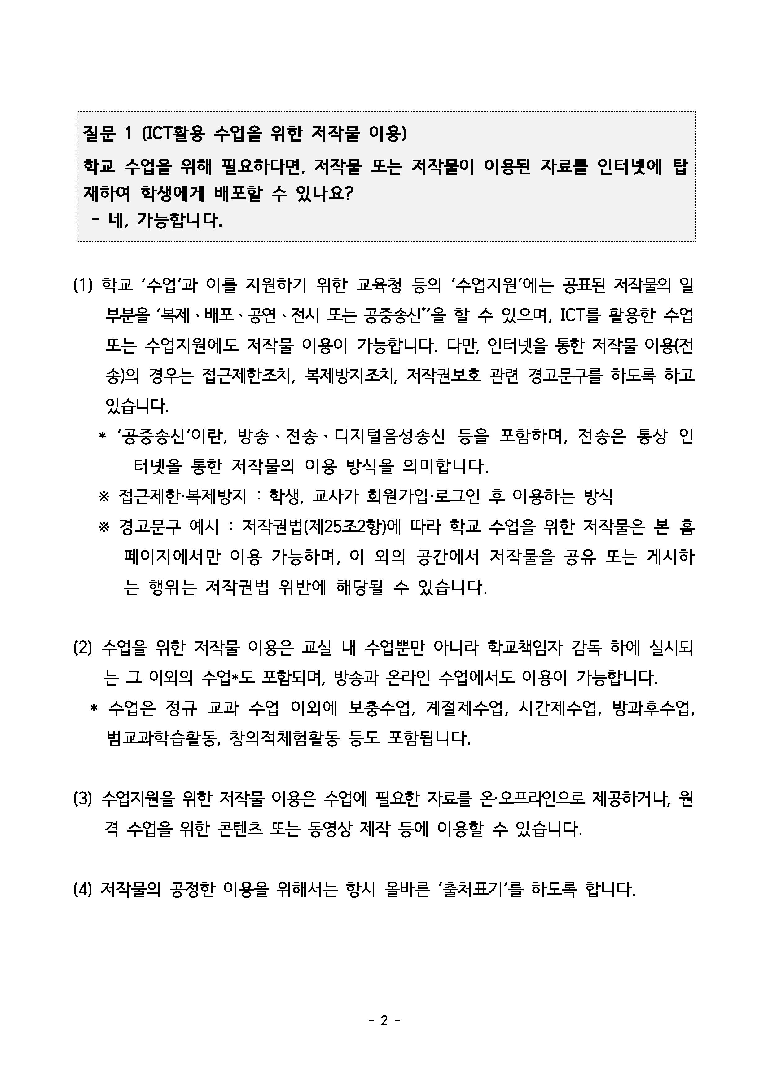 질문 1 (ICT 활용 수업을 위한 저작물 이용)