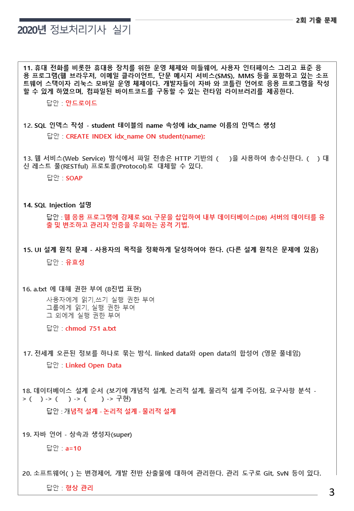 | 2020년 정보처리기사 실기 3회 기출문제(가답안) (1) | 2020.10.17 |