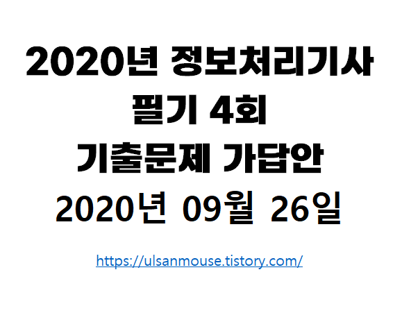 | 2020년 06월 06일 정보처리기사 필기시험 A형 문제 및 답안(1,2회통합) (0) | 2020.09.27 |