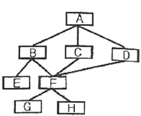 8. 다음은 어떤 프로그램 구조를 나타낸다. 모듈 F에서의 fan-in과 fan-out의 수는 얼마인가?