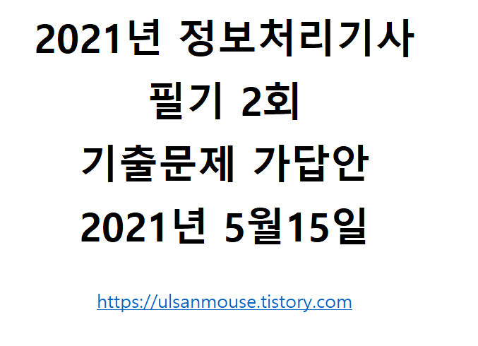 | 2021년 NCS 정보처리기사 필기 3회 기출문제 가답안(2021년 8월 14일) (0) | 2021.08.25 |
