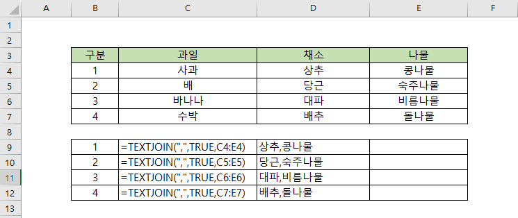 2. Textjoin함수를 이용한 방법(오피스365이상)